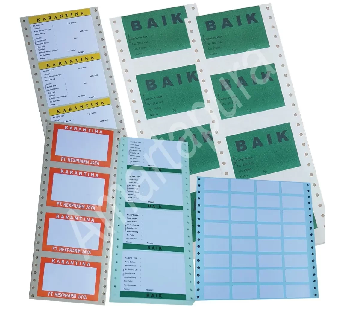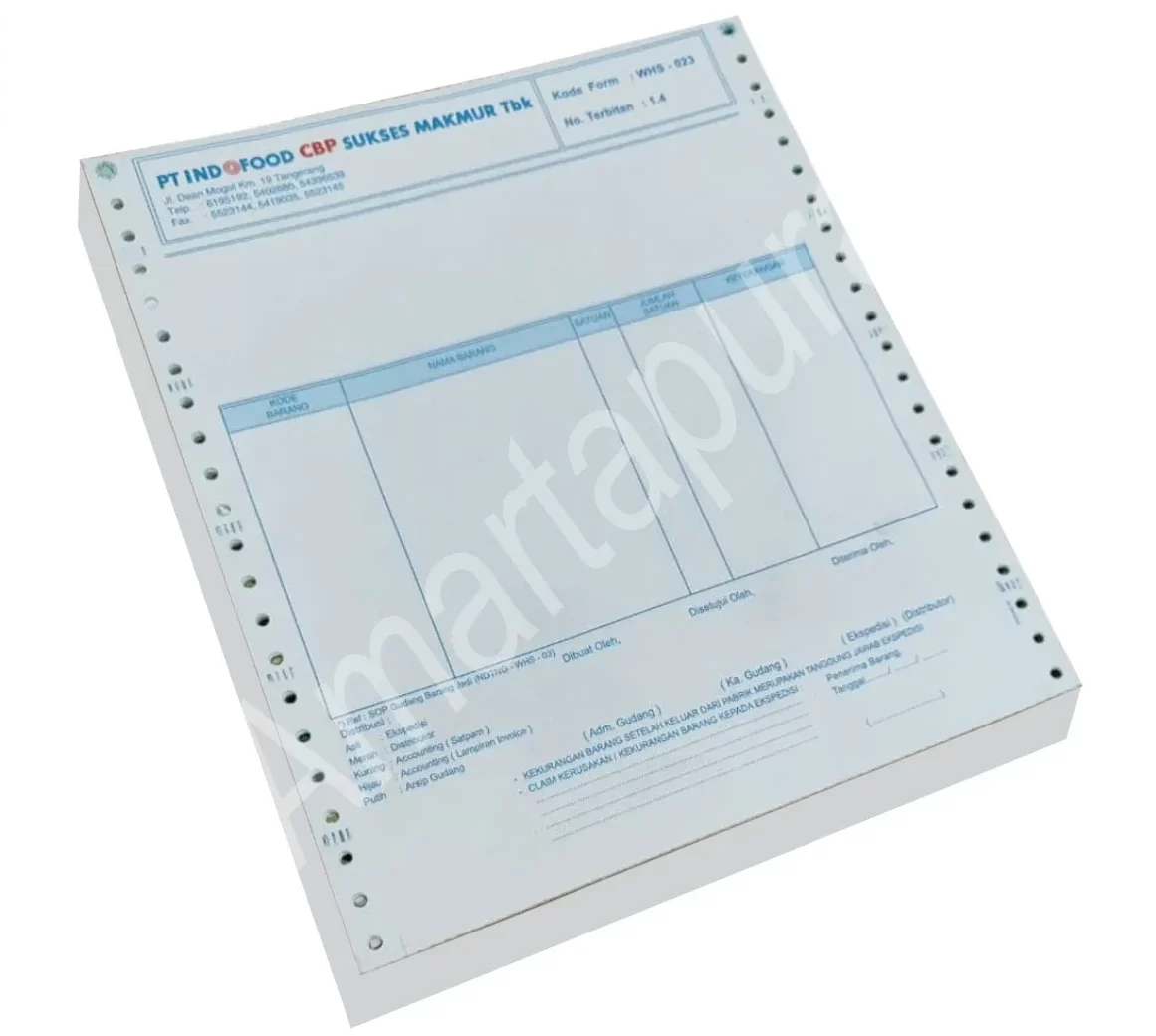 Kami adalah perusahaan yang bergerak Penyedia spesialiasai kebutuhan Continuos Form dan Stiker Label Baik Polos, maupun dengan cetakan / Continuous Form Printing. Kami menerima pesanan berbagai model yaitu : Faktur , Surat Jalan, Slip Gaji/ Salary Slip, Faktur, Kwitansi, Purchase Order, Delivery Order, Airwaybill dan berbagai Formulir lainya sesuai dengan kebutuhan consument dan mengerjakan cetak mulai dari 1 warna hingga 4 warna /Sparasi.